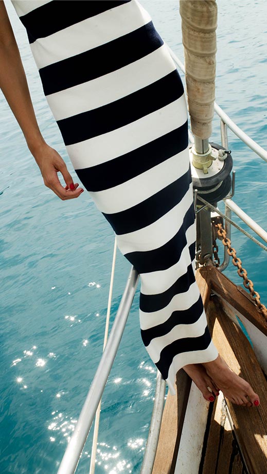 Fitted dress with a tube silhouette, made from knitted fabric, with classic Marinière-style stripes. The model is 5'7" and wears size S. This garment is made in Colombia under ethical manufacturing conditions.